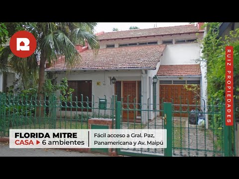 <p>VENTA CASA 6 AMBIENTES EN FLORIDA MITRE</p><p><br></p><p>Casa de 6 ambientes con fondo libre y cochera en zona exclusiva de Florida. Ubicada sobre arteria principal a metros de Panamericana. Con medios de transporte público cercanos (colectivo, tren Mitre) con fácil acceso a Gral. Paz y Av. Maipú. </p><p><br></p><p>Desarrollada en 2 plantas.</p><p><br></p><p>Planta baja.</p><p>Jardín al frente.</p><p>Entrada de auto.</p><p>Gran living comedor con pisos de madera.</p><p>1 dormitorio o escritorio.</p><p>Baño.</p><p>Cocina comedor.</p><p>Garage para 1 auto.</p><p>Patio.</p><p>Amplio fondo libre con parrilla.</p><p><br></p><p>Planta alta.</p><p>Acceso por escalera, revestida en madera.</p><p>Hall de distribución.</p><p>4 cómodos dormitorios muy luminosos, <span style="font-size: 14px;">uno de los cuales tiene un patio/balcón con vista al fondo libre.</span></p><p>Baño completo.</p><p><br></p><p>Apto crédito.</p>