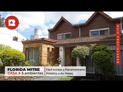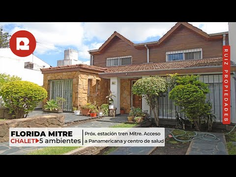<p>VENTA CASA DE 5 AMBIENTES EN FLORIDA</p><p><br></p><p>Chalet de 5 ambientes sobre amplio lote con quincho, piscina y jardín. Ubicada sobre calle principal próximo a Av. Maipú y quinta presidencial. A metros de la estación del ferrocarril Mitre. Con fácil acceso a Panamericana y centro de salud.</p><p><span style="font-size: 14px;"><br></span></p><p><span style="font-size: 14px;">Desarrollado en 2 plantas.</span></p><p><span style="font-size: 14px;"><br></span></p><p><span style="font-size: 14px;">Planta baja.</span></p><p><span style="font-size: 14px;">Jardín al frente.</span></p><p><span style="font-size: 14px;">Cochera.</span></p><p><span style="font-size: 14px;">Amplio living comedor.</span></p><p><span style="font-size: 14px;">Cocina con muebles completos y entrada de servicio.</span></p><p><span style="font-size: 14px;">Toilette.</span></p><p><span style="font-size: 14px;">Amplia suite con baño.</span></p><p><span style="font-size: 14px;">Patio.</span></p><p>Jardín.</p><p>Piscina.</p><p>Quincho con parrilla.</p><p>Dependencia de servicio.</p><p><br></p><p>Planta alta.</p><p>Acceso por escalera.</p><p>Hall de distribución.</p><p>3 cómodos y luminosos dormitorios con placard.</p><p>Baño completo con antebaño.</p><p>Por escalera caracol se accede a un altillo de usos múltiples.</p><p><br></p><p>Apto crédito.</p><br /> <br />