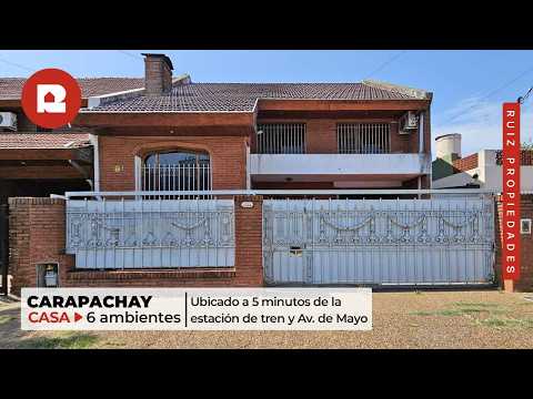 VENTA CASA 6 AMBIENTES EN CARAPACHAY <br> <div><br></div><div>Muy buen chalet, ubicado en Carapachay, sobre lote de 10 x 30</div><div><br></div><div>Planta baja.</div><div>Living doble altura con barra tipo bar y hogar.</div><div>Comedor diario.</div><div>Cocina con muebles completos.</div><div>Lavadero.</div><div>Quincho con parrilla.</div><div>Cuarto de herramientas.</div><div>Entrada de auto y cochera.</div><div>Fondo libre.</div><div><br></div><div>1º Piso.</div><div>Hall.</div><div>Escritorio balconeado hacia el living.</div><div>4 Dormitorios con placard, uno de ellos en suite.</div><div>Toilette.</div><div> </div><div>2º Piso.</div><div>Dormitorio.</div><div>Amplio playroom con espacio de guardado.</div><div><span style="font-size: 14px;"><br></span></div><div><span style="font-size: 14px;">Apto Crédito.</span></div><br>