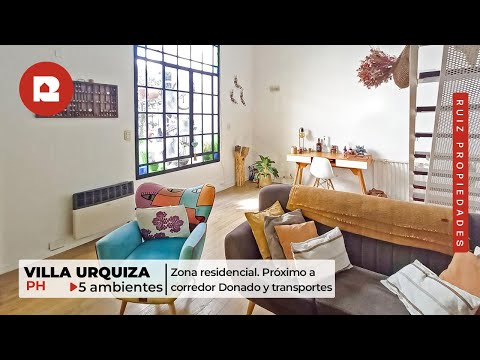 <p>VENTA PH DE 5 AMBIENTES EN VILLA URQUIZA</p><p><br></p><p>Excelente ubicación en una zona residencial de Villa Urquiza a metros del corredor verde Donado con numerosos medios de transporte.</p><p>Se trata de un PH sin expensas y con entrada independiente. </p><p>El mismo fue modernizado y reciclado en su totalidad generando aprovechamiento de espacio y luminosidad en todos sus ambientes.</p><p>En planta baja se accede por un pasillo privado que desemboca en un patio de distribución. Cuenta con living comedor, cocina completa con conexión de lavarropas y un gran comedor diario, un 2do patio a su contrafrente. Toilette, una habitación con entrepiso, escritorio y un pequeño estudio.</p><p>La planta alta posee tres dormitorios amplios, el principal en suite y un gran vestidor. Los restantes con placard y un segundo baño completo.</p><p>Del patio de planta baja se accede a una terraza en el primer nivel con parrilla.</p><p>No apto crédito.</p><p><br></p><br>