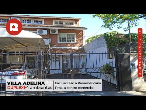 <p>VENTA DÚPLEX 4 AMBIENTES EN VILLA ADELINA</p><p><br></p><p>Dúplex de 4 ambientes con patio y cochera en excelente estado. Ubicado en zona tranquila y residencial. A metros de medios de transporte público y centro comercial con fácil y rápido acceso a Panamericana.</p><p><br></p><p>Desarrollado en 2 plantas.</p><p><br></p><p>Planta baja:</p><p>Amplia cochera.</p><p>Living comedor.</p><p>Toilette.</p><p>Cocina comedor con muebles completos.</p><p>Lavadero.</p><p>Patio con parrilla.</p><p><br></p><p>Planta 1º piso:</p><p>Acceso por escalera.</p><p>Hall de distribución.</p><p>Baño completo.</p><p>2 cómodos dormitorios, ambos con placard.</p><p><br></p><p>Planta 2º piso:</p><p>Acceso por escalera.</p><p>Amplio dormitorio, muy luminoso.</p><p>Escritorio o baulera.</p><p><br></p><p>Apto crédito.</p>