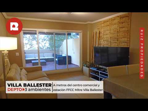 <p>VENTA DEPARTAMENTO 3 AMBIENTES EN VILLA BALLESTER</p><p><br></p><p>Departamento de 3 ambientes con amplio patio muy luminoso en excelente zona. </p><p>Propiedad ubicada a metros del centro comercial en estratégica ubicación con medios de transporte público.</p><p><br></p><p>Desarrollado en 1 planta tiene:</p><p>Amplio living comedor con salida a patio/balcón.</p><p>Hall de distribución.</p><p>Toilette.</p><p>Cocina comedor con muebles completos.</p><p>Lavadero.</p><p>2 cómodos dormitorios con vista abierta y salida al patio.</p><p>Baño completo.</p><p>Gran patio en L de 62 m² con parrilla, apto varios destinos</p><p><br></p><p>Edificio de 10 pisos con 4 departamentos por piso. Cuenta con 3 ascensores.</p><p> El mismo posee SUM para eventos familiares. Hay baulera común a los propietarios para bicicletas, motos, etc.</p><p><br></p><p>Apto crédito.</p>